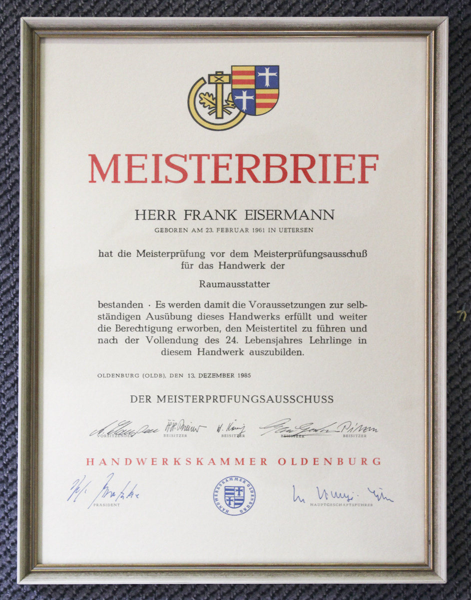 In zweiter Generation hat Herr Frank Eisermann im Januar 1987 die Firma weitergeführt.